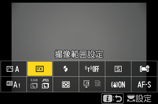 [画質モード]に設定されていたものを変更、[撮像範囲設定]を選んでOKボタンを押せば設定完了です
