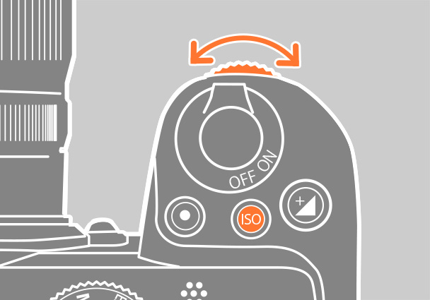 ISOボタンを押しながらサブコマンドダイヤルを回し、[ISO AUTO(感度自動制御する)]に設定します