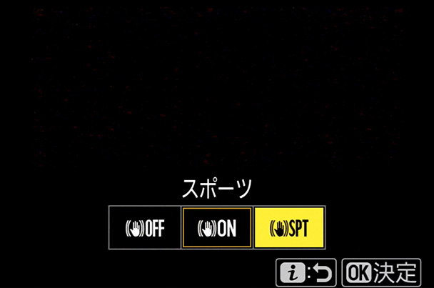 - 「手ブレ補正」を「ON 」(今回はスポーツ)にする。
