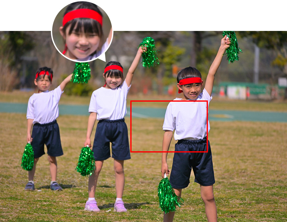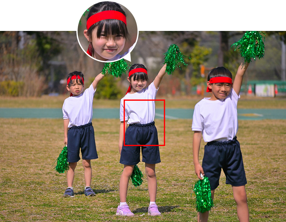徒競走のように速く動く子どもを捉えなければならないという競技ではないものの、玉入れや大縄跳びなど、ジャンプしたり横にズレたり上下左右の動きを伴う競技も多いと思います。そのような競技でも「運動会の基本のカメラ設定」で撮影することができますが、もしも被写体ブレを起こしてしまう場合はシャッタースピードをブレなくなるまで速くしてみましょう。