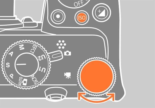 ISOボタンを押しながらメインコマンドダイヤルを回し、低い感度(今回はISO100)に設定します