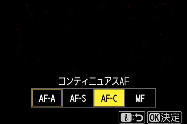 動く被写体を撮るときに最適な[コンティニュアスAF]に設定します