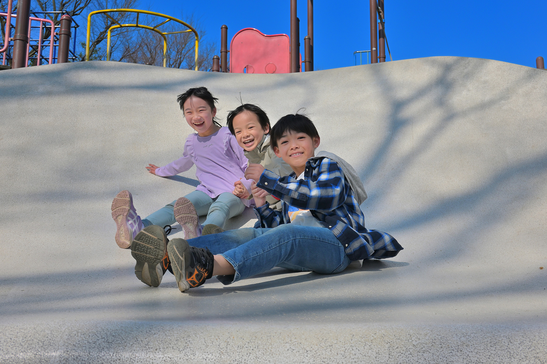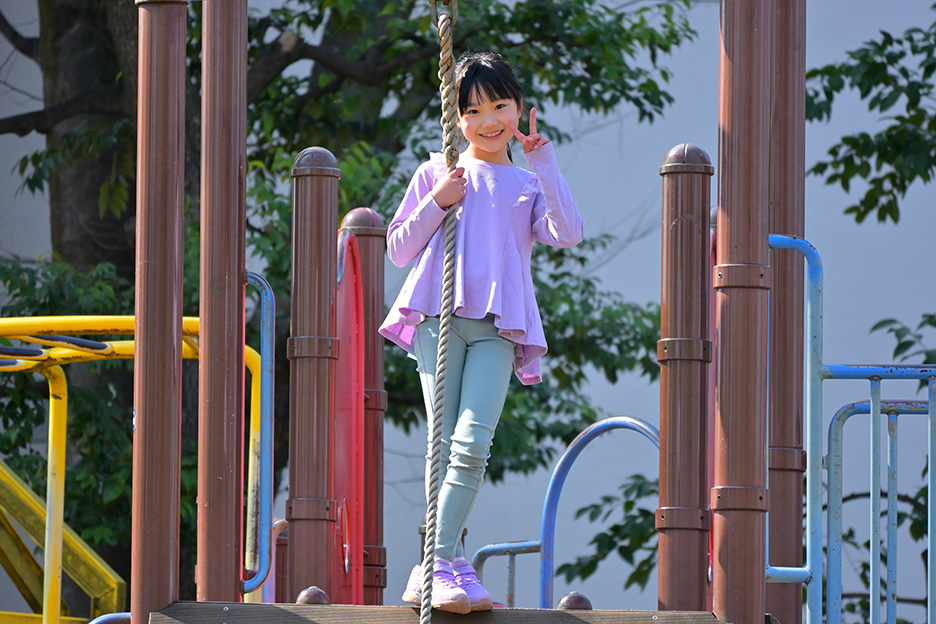 なお、一番大切なのは遊具で遊ぶ子どもの安全を最優先にすることです。撮影に夢中になり過ぎて周囲で遊ぶお子さんとぶつかってしまうといったことのないように、また望遠レンズで離れた位置から撮影する場合には別の大人に遊んでいる子どもの安全を確保してもらうなど、安全に配慮しながら撮影を楽しんでくださいね。