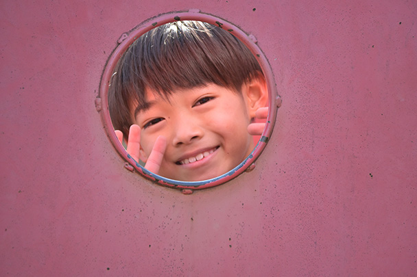 望遠ズーム(焦点距離:250mm)で撮影すると背景が整理され、子どもをより印象的に写すことができます