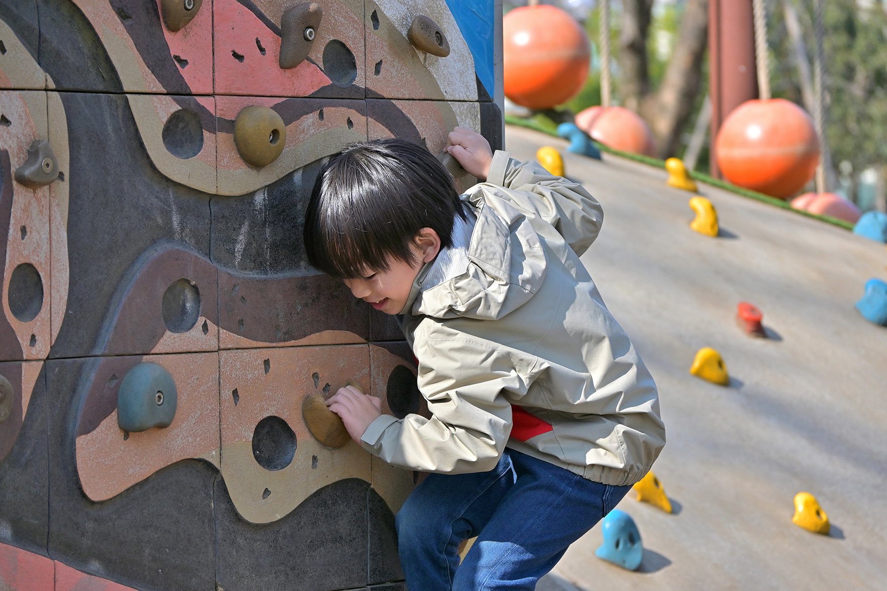 標準ズーム(焦点距離:37mm)で撮影した1枚。遊具の多い公園は背景がどこもごちゃごちゃとしがちです