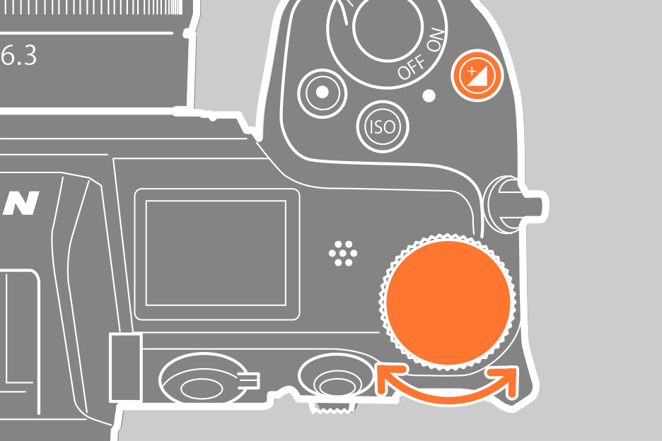 露出補正を行うには、+-ボタンを押しながらコマンドダイヤルを回します