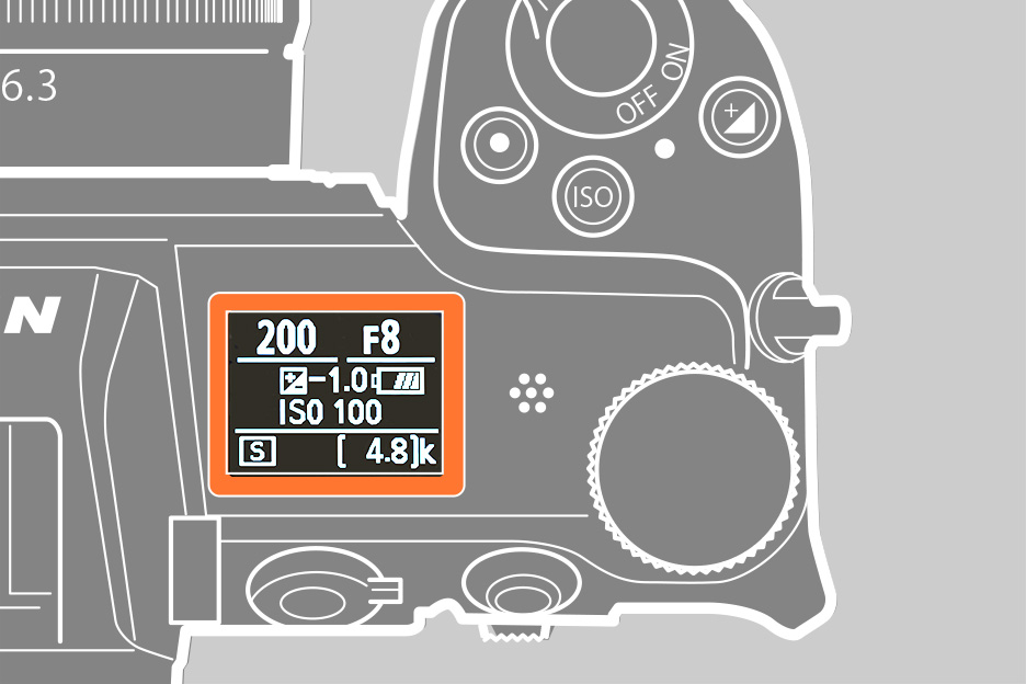 今回の撮影に用いたZ 6IIの場合、カメラ上部にある表示パネルに変更した露出が表示されます