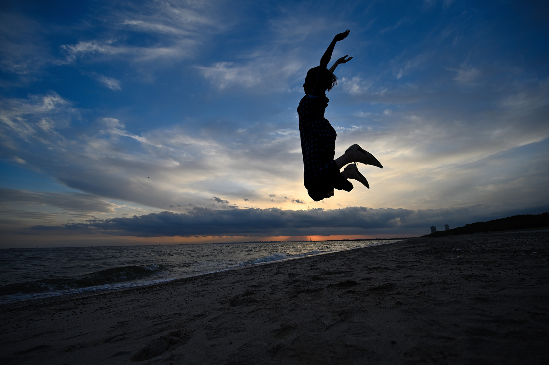 また、黒い影がメインの被写体となりますので、その形がハッキリわからないとシルエット写真としての良さが薄れてしまいます。体全体を入れてフレーミングすると、人の形のシルエットがより分かりやすくなるためおすすめです。また海辺のように背景がすっきりとした広い場所で、空など明るいものが背景になる場所を選びましょう。