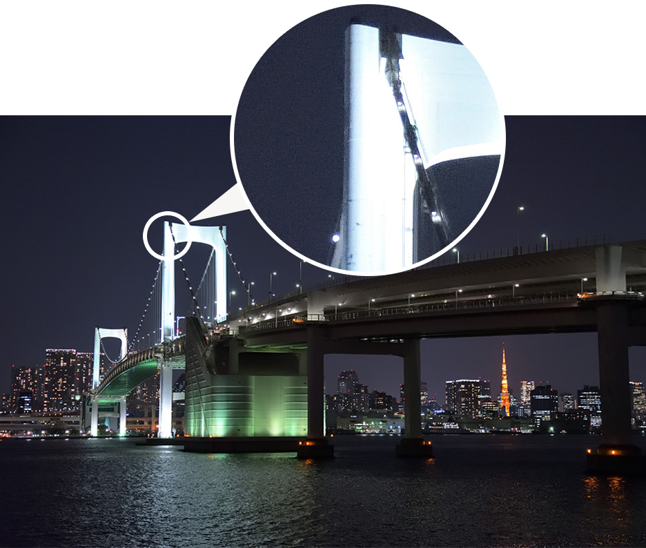 開放絞り値の違うレンズで写り方の違いを比べてみましょう。単焦点レンズとズームレンズを使って夜景を手持ち撮影しました。手ブレを防ぐためISO感度を上げ、1/30秒のシャッタースピードを確保しています。