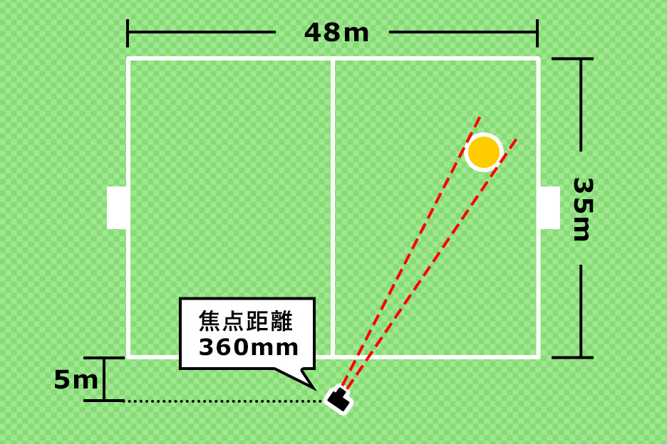 - 超望遠500mmまでの焦点距離をカバーすることができ、撮影場所からより遠くにいる選手も大きく写すことができます。