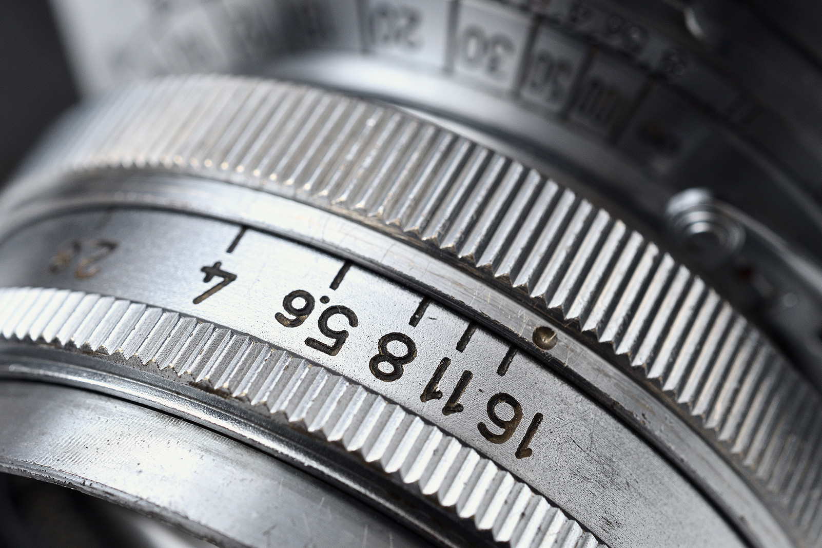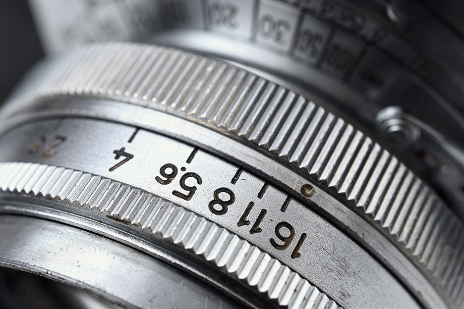 背景紙の上にカメラを置き、斜め上から全体を入れるようにフレーミングし撮影を行いました。カメラのディテールをしっかり撮りたかったため、絞りはf/16まで絞り込み全体にピントを合わせています。形や細かいデザイン、使いこまれている様子なども伝わる1枚になりました。時を重ねたカメラの味わいを感じ取ることができます。