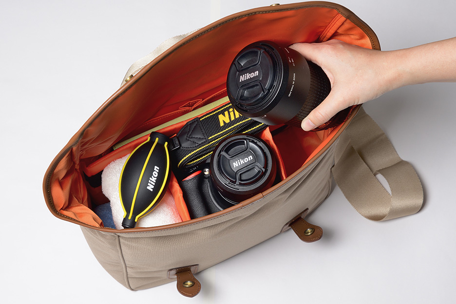 移動中は、カメラとレンズの保護のため、カメラバッグに入れて持ち歩くとよいでしょう。レンズキャップは忘れず装着し、フードは逆さ向きにつけておくとよりコンパクトに収納することができます。