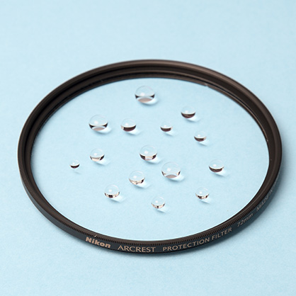 高い撥水効果で水滴をよくはじくレンズ保護フィルター