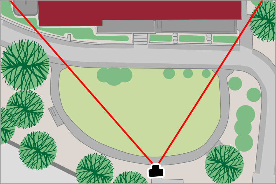 - 引いて撮ることができない限られたスペースの中でも、広角側で建物の外観や室内を広く撮ることができます。