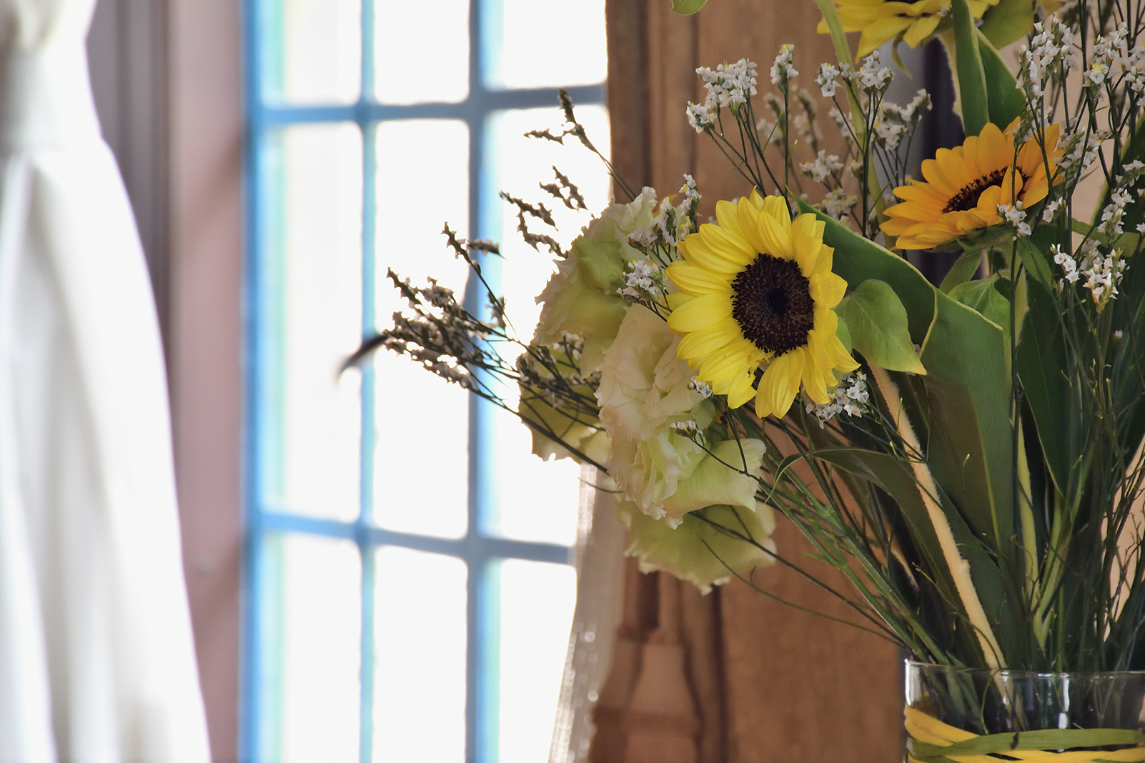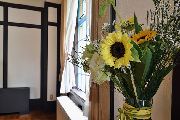 洋館ではあちこちに、部屋の雰囲気に合わせた花が飾られていました。そこで、背景に奥行きを作りながら焦点距離140mmでひまわりを撮影、望遠ならではの背景ボケや圧縮効果を活かした1枚を撮ることができました。せっかくの高倍率ズーム、幅広い焦点距離を活かしてさまざまにスナップしてみましょう。