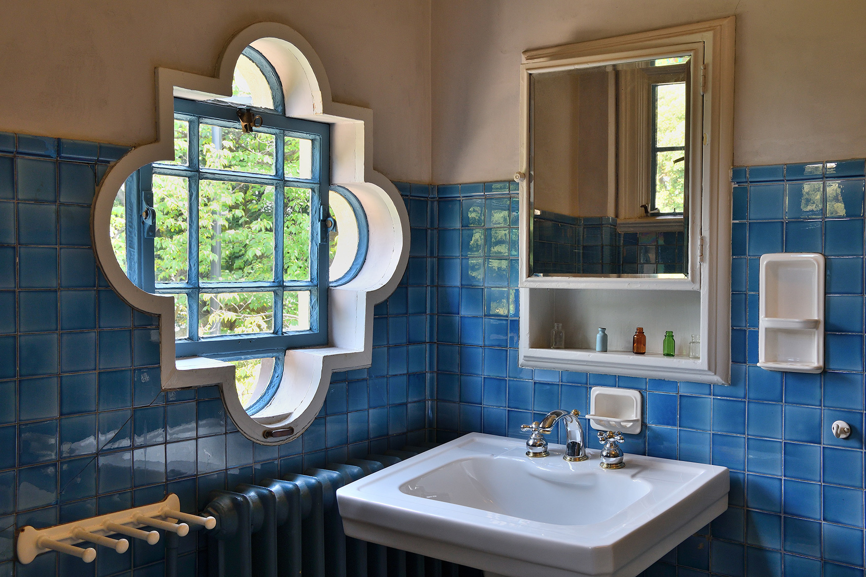洋館の中に入ると建物の意匠、部屋の造りなどに目を奪われます。また当時の部屋を想わせるように置かれた小物はどれも画になるものばかり。手の触れられないもの、近づいて撮れない場所でもズームを活かしながらさまざまに切り取ることができます。書斎のデスクに飾られた雰囲気ある小物は、どこを切り取るかバランスを見ながら焦点距離を決め85mmで撮影しました。