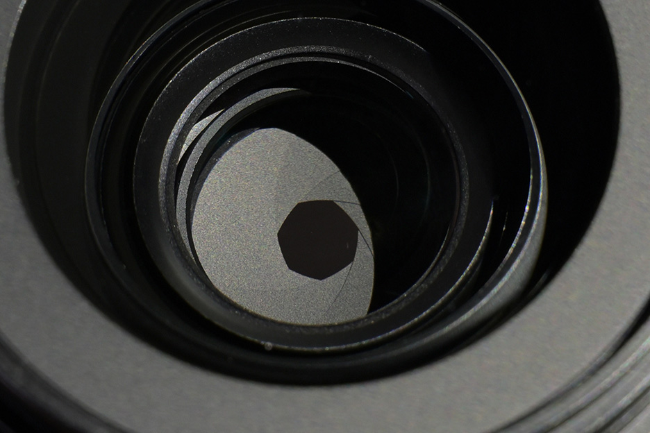 絞りは、このように円弧状に並んだ数枚の絞り羽根からなっています