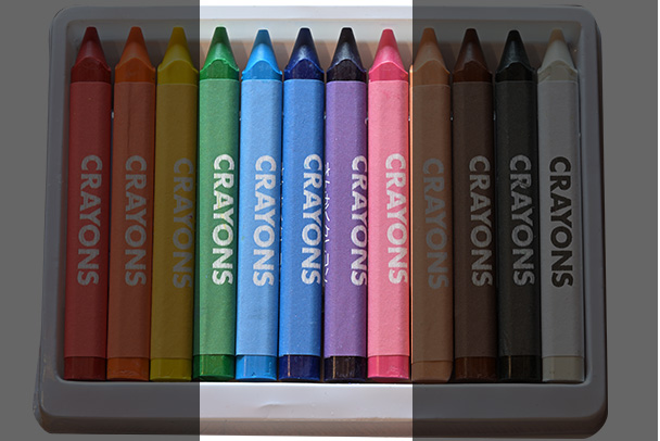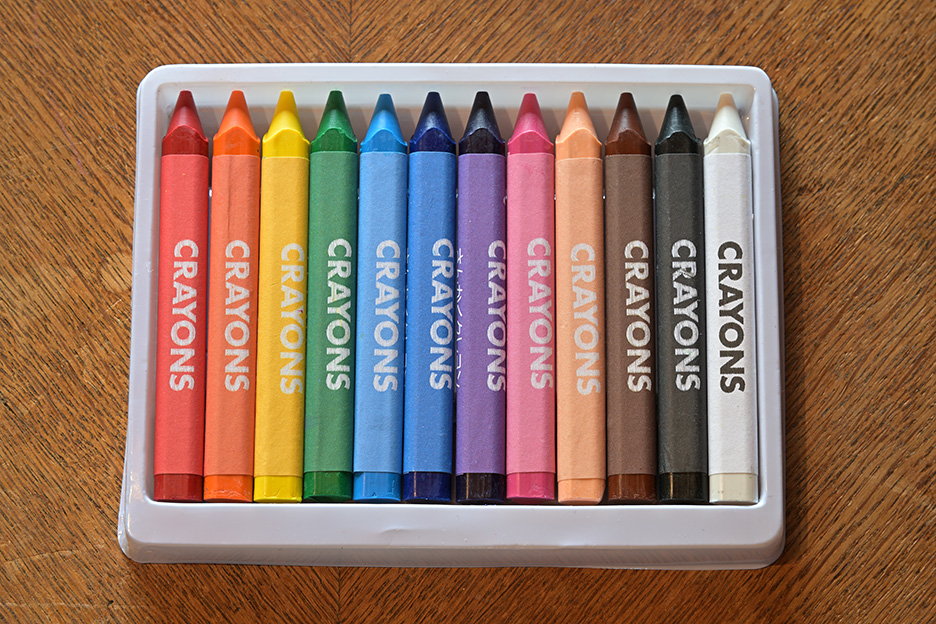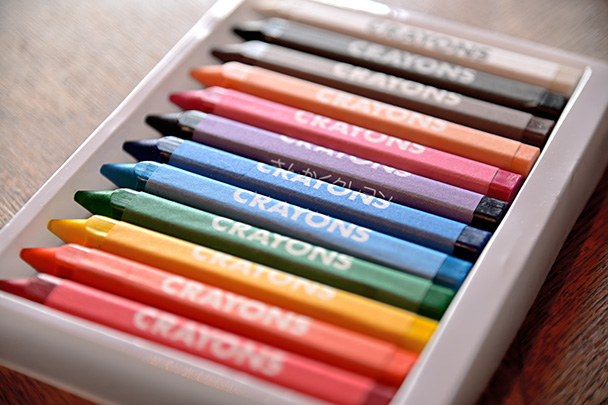 このように並んだクレヨンを、絞り値を変えながら撮影してみましょう