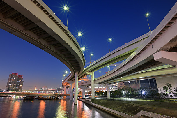 夜景も風景写真ですので絞りは絞って撮影するのが基本となります。夜は光量が少ないため手持ち撮影などでは手ブレしてしまいあまり絞り込めない場合がありますが、“これくらいまでシャープに写っていれば問題ない”という絞り値を探しておくことが大切です。絞り値が大きくなると光量が減るためシャッタースピードは遅くなりますので、撮影時は三脚を利用するとよいでしょう。