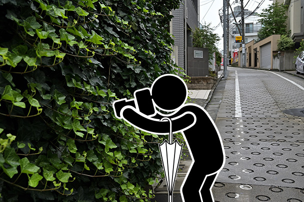 フェンスや手すり、ガラスや壁面、車のフロントなど街を歩けばあちこちに雨粒を見つけることができます。シチュエーションに合わせながら、標準ズームで自由に切り取って撮影してみましょう。