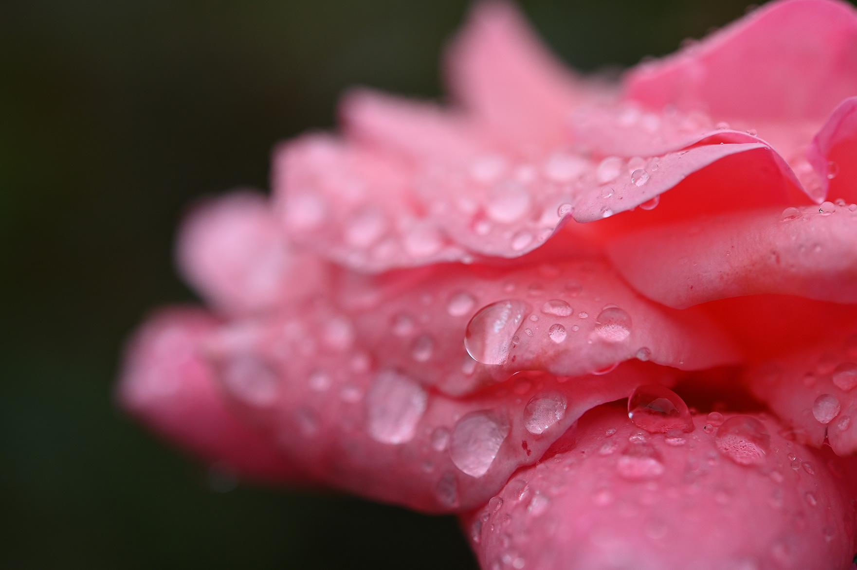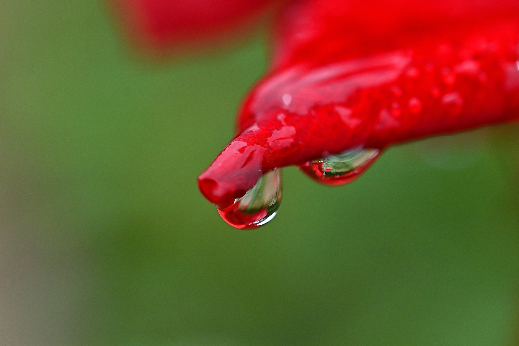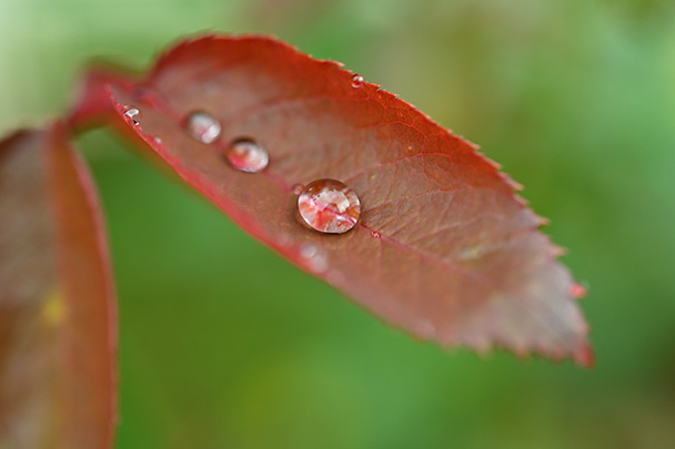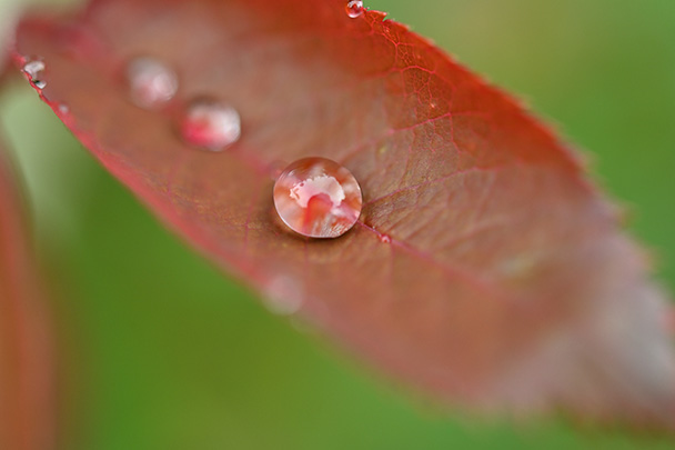 - 雨粒にぐっと寄ったクローズアップ撮影で、形状や質感までもシャープに捉えることができます。