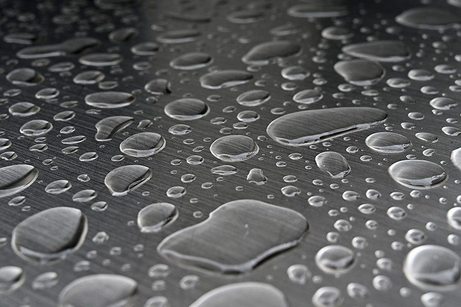1枚目は手すりの上面に落ちた雨のしずくを撮影、広範囲にピントが合うよう絞りを絞って斜め横から立体感が出るようフレーミングしました。大小さまざまな形のしずくにフォーカスすることで、不思議な模様が連なるアート風の作品になりました。