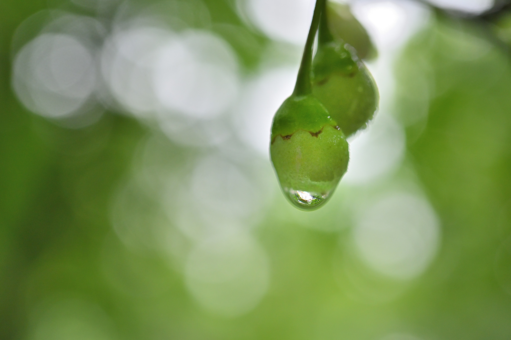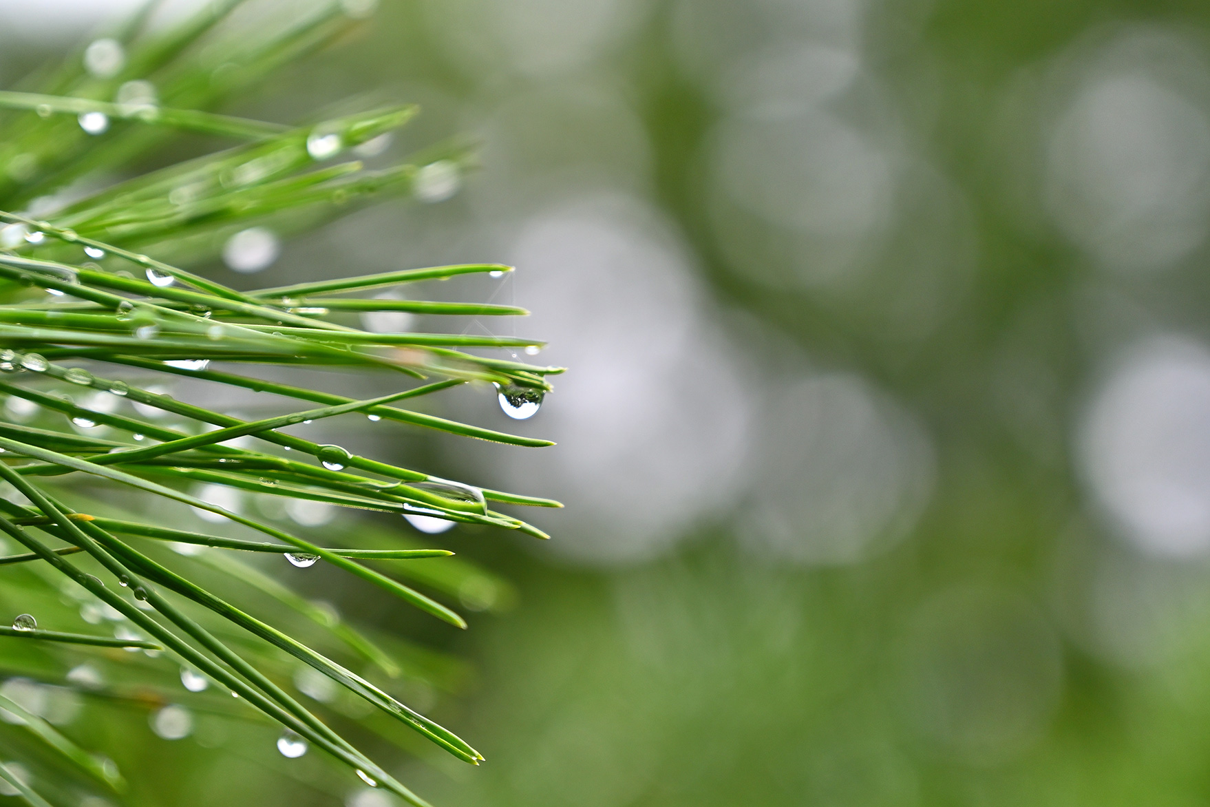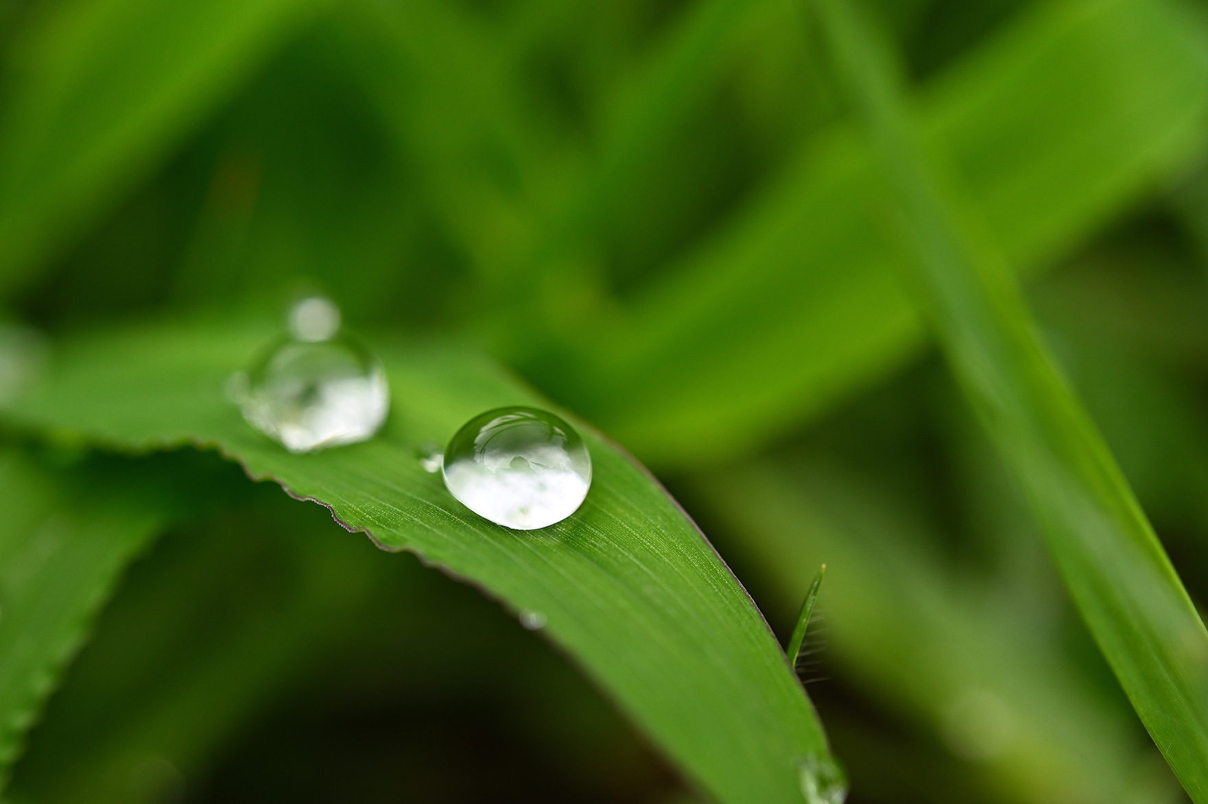 草花についた雨粒は雨の日ならではのフォトジェニックな被写体です。葉の表面にある細かな毛に弾かれきれいな丸みを帯びたしずくの繊細な美しさを表現するため、マイクロレンズでぐっと寄って撮影を行いました。クローズアップ撮影ではピントの合う範囲が狭くなるため、球体の表面にしっかりとピントを合わせましょう。