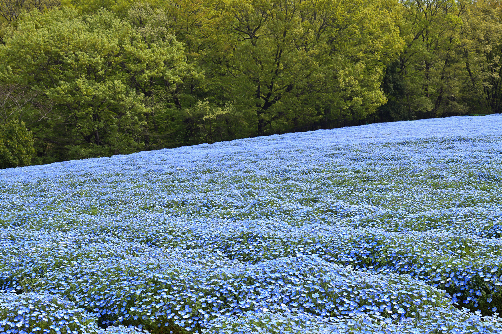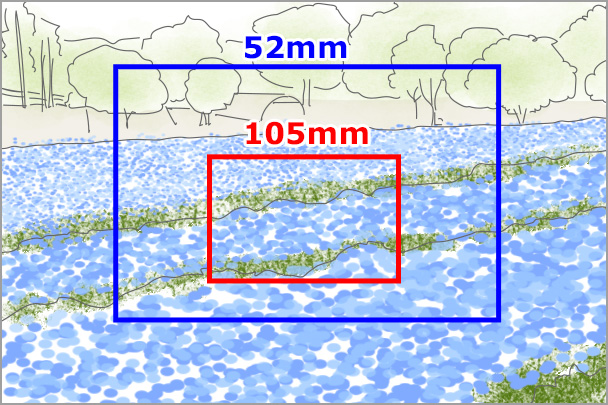 - 焦点距離60mmの標準に近い画角で、ネモフィラ畑を引いて撮ることもできます。