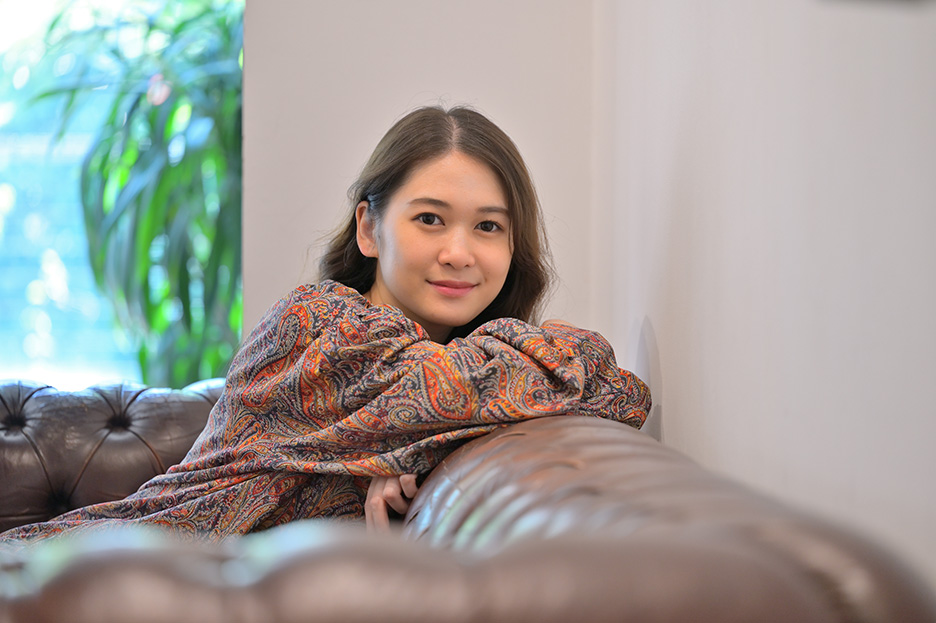 ワンルームマンションの一室と、大きな窓と家具が並ぶスタジオの2か所を借りて撮影を行いました。ワンルームマンションでは部屋にあるベッドやクッションなどを使い、アットホームな空気感、リラックスしたイメージで撮りました。スタジオではおしゃれな家具の雰囲気を活かして、花、布、グラスなどの小道具も使いながら撮影しています。
