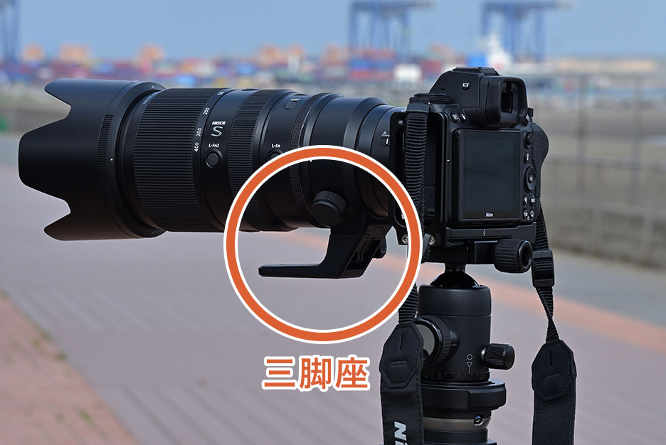 通常、三脚を使う際にはカメラのボディー部分を「雲台」(カメラを自由な角度で固定することができる三脚のヘッド部分)に固定しまずが、超望遠レンズの場合はレンズの重さで重心が前に傾いてしまい三脚が安定せず、ブレの原因になったり三脚が倒れてしまったりする恐れもあります。そのため超望遠レンズには「三脚座」と呼ばれる台座が取り付けられており、この三脚座を雲台に固定します。