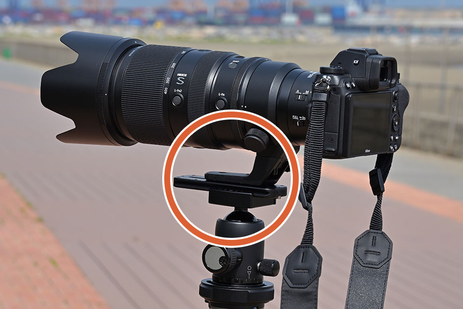 取り付け方法や稼働の仕方など三脚の雲台部分はメーカーごとに特徴が異なりますが、雲台から出ているネジに直接カメラボディーの三脚穴をねじ込んで装着する「直付け方式」の雲台は、長く重い超望遠レンズの装着には向きません。取り付けの際に落としてしまうといったトラブルも考えられるため、あらかじめネジの付いたプレートをカメラボディー(三脚座)に装着しておき、そのプレートを雲台に固定し三脚に取り付ける「クイックシュー方式」の三脚をおすすめします。