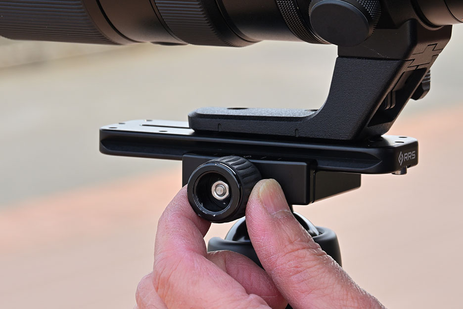 プレートを雲台に固定します。この方法であれば三脚への着脱は簡易に、スムーズに行うことができます。