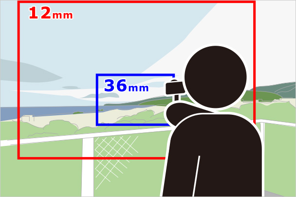 - 12mm(35mm判換算:18mm相当)から28mm(35mm判換算:42mm相当)までをカバーします。
