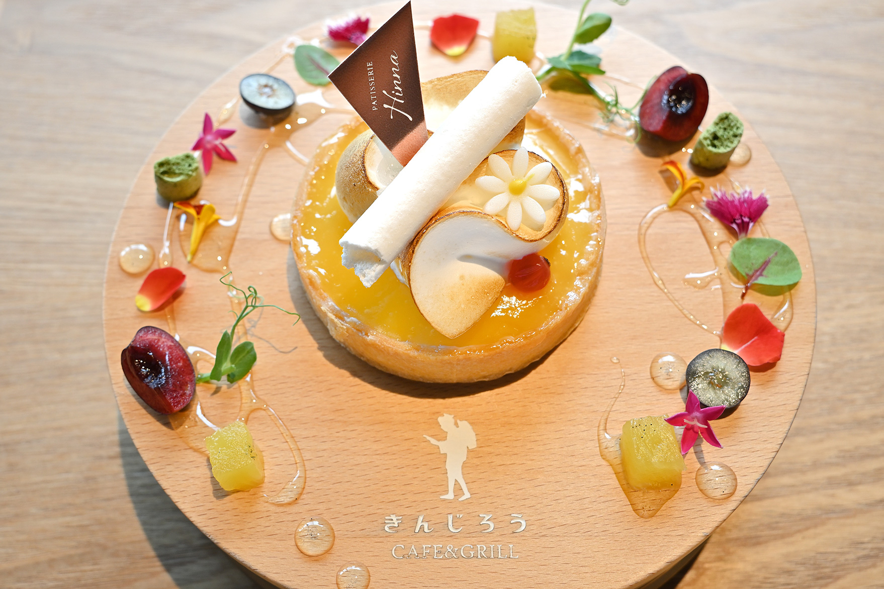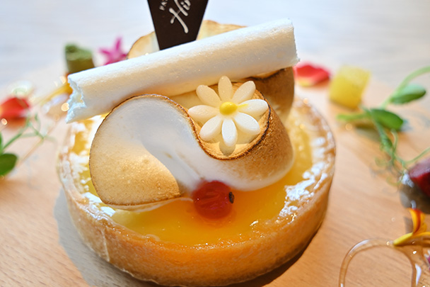 最短撮影距離が0.19mと短いため、食べ物など被写体にググっと寄って撮影することができます。こちらは美しく飾られたケーキプレート。ケーキの上に飾られた花の部分にピントを合わせ、デコレーションの可愛さを捉えました。接写で撮影しているため背景もよりボケやすくなります。