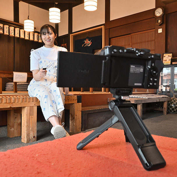 移動しながら撮影をするときは、コンパクトな装備がおすすめです。今回選んだ NIKKOR Z DX 12-28mm f/3.5-5.6 PZ VRは超広角ズームレンズの中でも特に軽く街歩きにぴったりのレンズ。カメラは小型・軽量のミラーレスカメラZ 30に「SmallRig トライポッドグリップ3070」を装着、静止画だけでなく動画撮影もしやすいように、片手でカメラを持ちながらリモコン操作で撮影を行いました。
