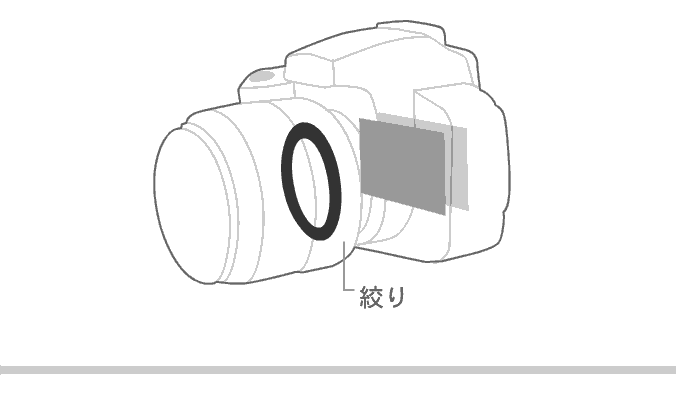 カメラはシャッターの開いている時間と、絞りの開き具合の2つによって、撮像素子にどの程度光を当てるかをコントロールしています。