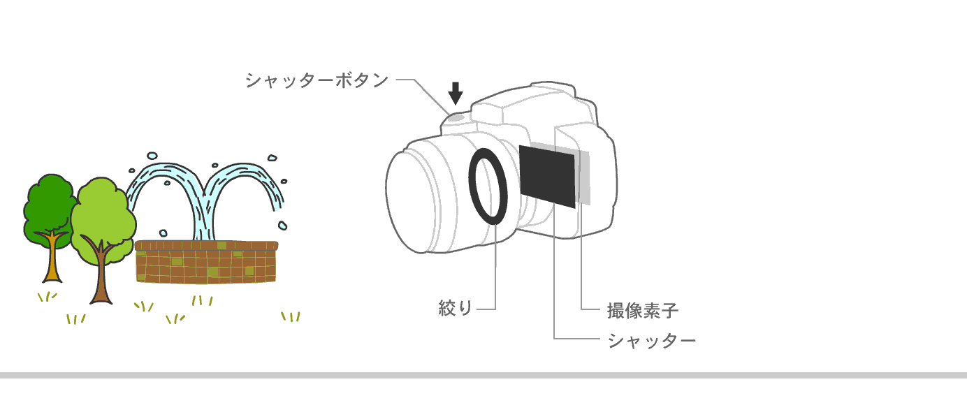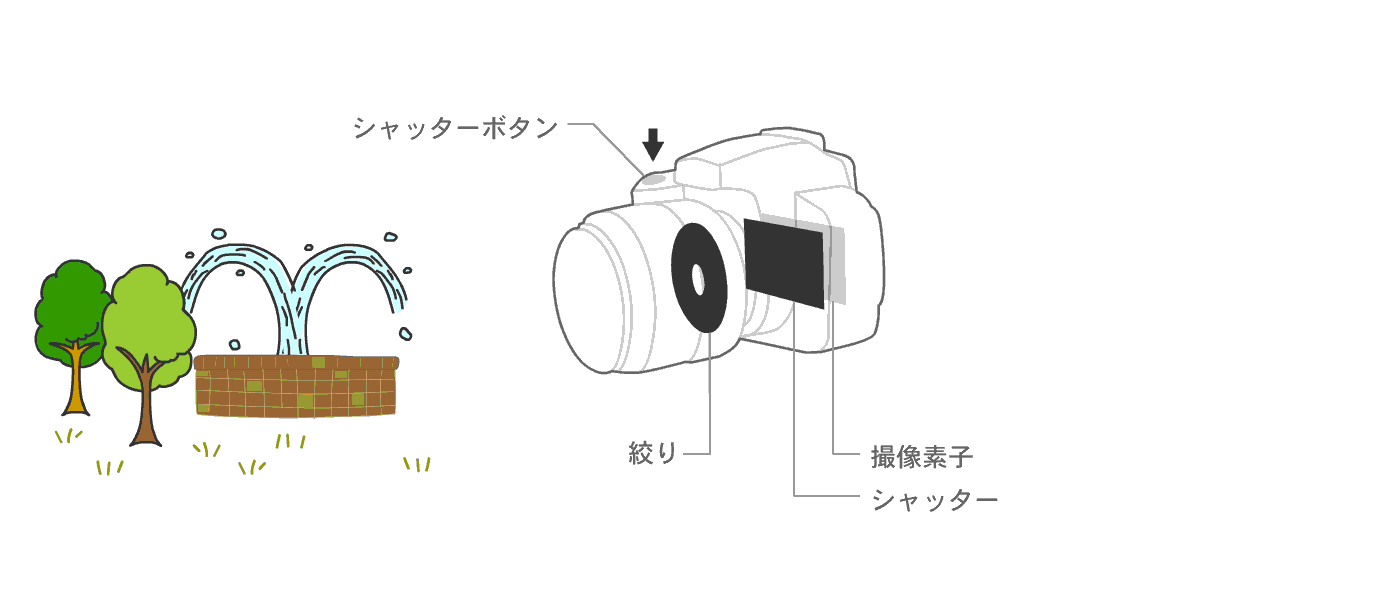 絞り値を大きくすればそれだけ撮像素子上に写る像は暗くなりますが、その分だけシャッタースピードを遅くすれば適正露出にすることができます。