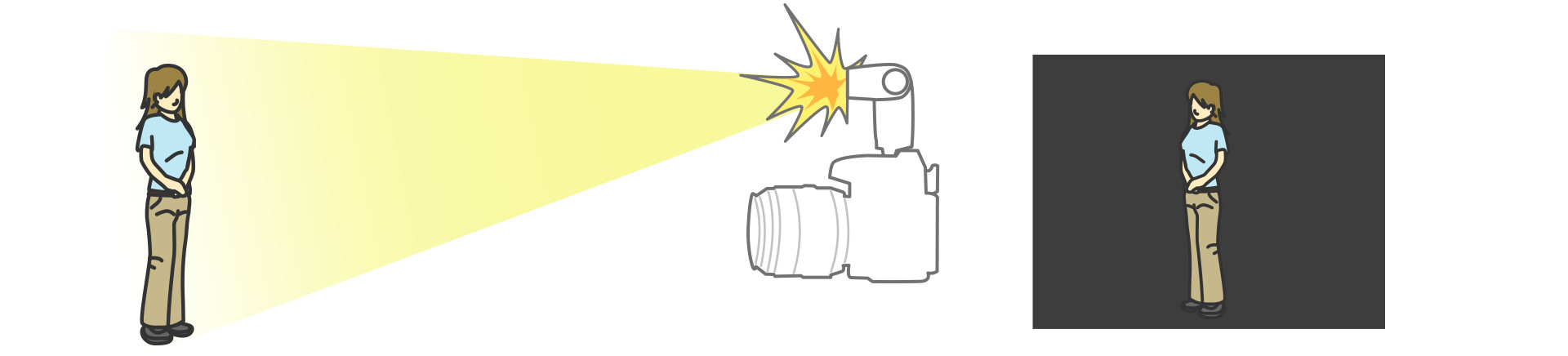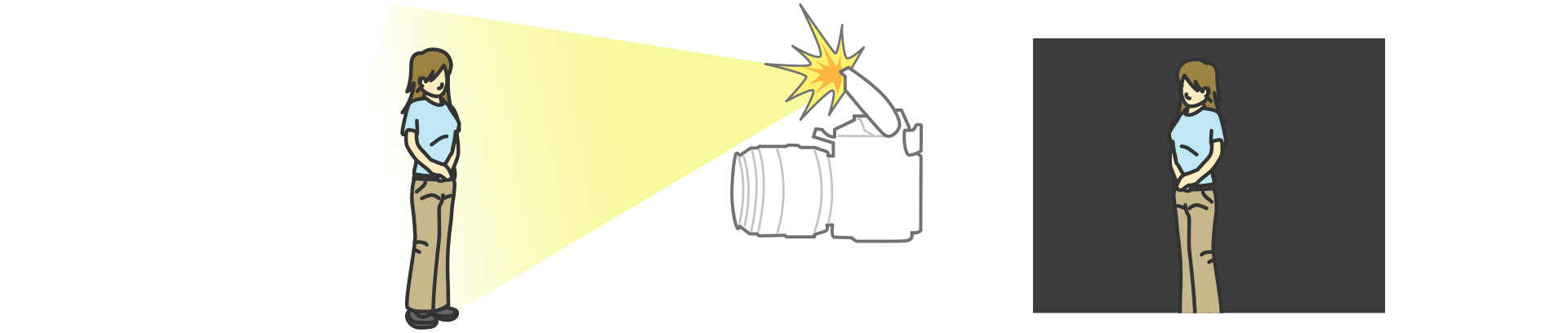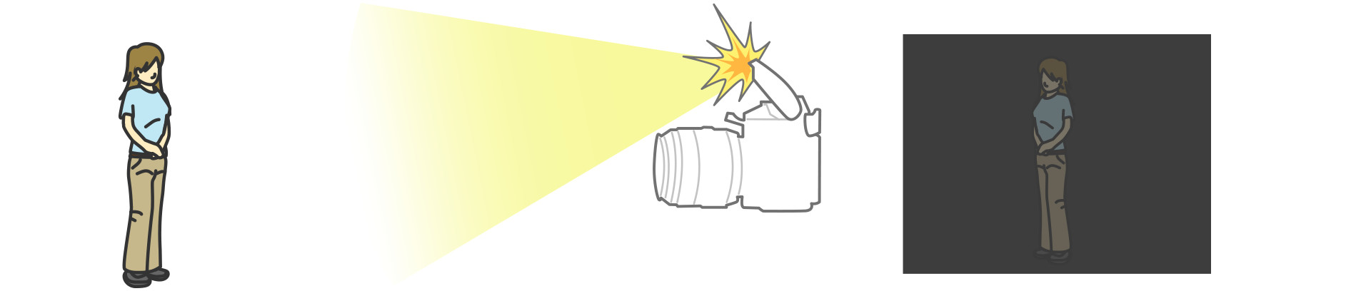フラッシュ撮影では、被写体にフラッシュの光が当たることで被写体を明るく写します。