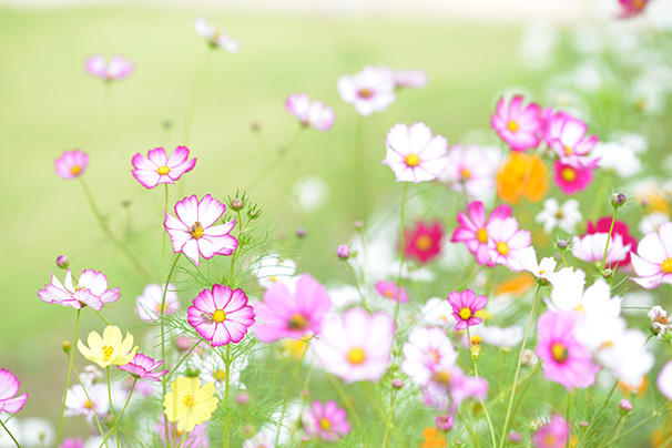 - 単色の花でなく、花弁に色の変化のあるコスモスを選ぶ