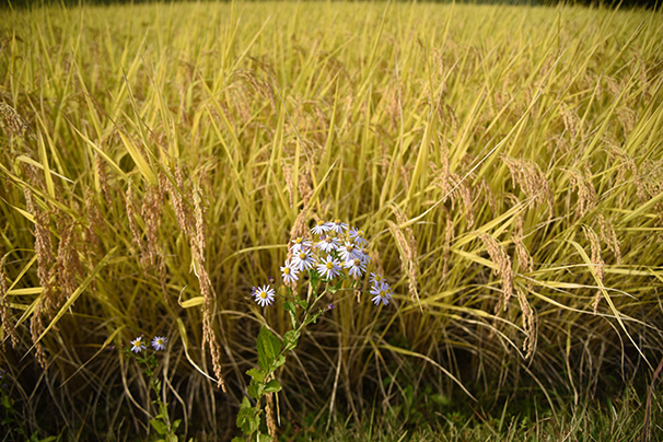 山々が色づき始める頃、蕎麦畑が広がり、稲の穂はずっしりと垂れ下がります。