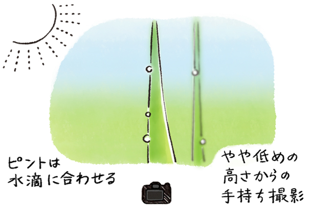 - 水滴を大きめに捉えるため、中望遠のマイクロレンズを使用