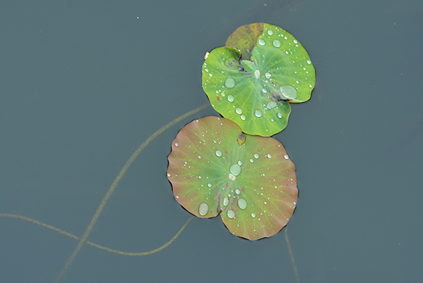 水草の曲線の美しさを捉えました。ホワイトバランスを4760Kにして、やや青味を加えています。葉の上の水滴はあまり目立ちませんが日が差して光ってくると、また違った印象になるでしょう。