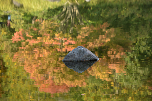 水面に出ている岩にピントを合わせ、対岸の紅葉しているケヤキの写り込みを狙いました。風景を大きく捉えるだけでなく視点を変えながら小さい世界を探してみることで、作品作りにバリエーションを加えてみましょう。