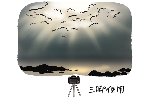 「天使の階段」などとも呼ばれている雲間からの光は、何か神々しく身の引き締まるような気がします。海でも山でも見ることのできるそんな光景に出会ったら迷わずシャッターを切りましょう。