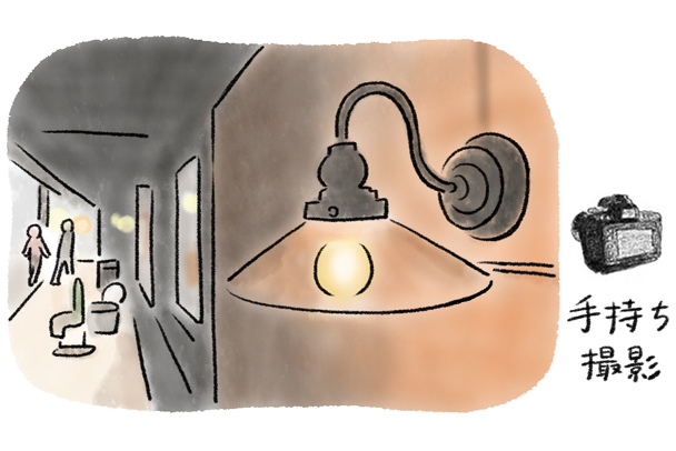 無機質で冷たそうな蛍光灯の灯りと比べると、電球の灯りは色合いも含めて落ち着いた雰囲気が伝わります。撮り方にひと工夫して作品作りをしてみましょう。