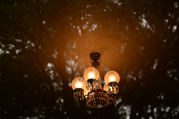 洋館内の照明を窓越しから捉えました。窓に写った木々のシルエットを入れ変化をつけています。天井の反射も考えて灯りはやや下側に配して、バランスをとっています。