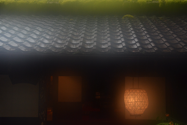 日本を感じさせる提灯と瓦屋根との組み合わせです。しっとりとした感じを強調するため、画像編集でソフトフィルターをかけてみました。提灯の赤味を消さないよう、露出補正はマイナス(-2.0)に設定しています。