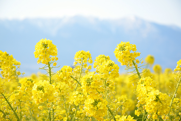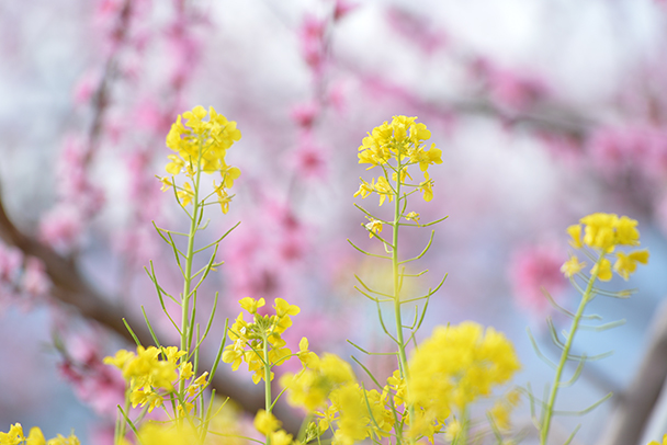 「色の春」を考えると、まず思い浮かぶのは黄色い菜の花ではないでしょうか。風が少しぐらい冷たくても、山々に残雪があっても、地上は春満開です。思い切って撮影に出かけてみましょう。