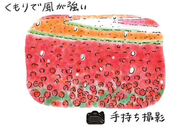- 強めの風を待ち、サクラが一気に散り始めたタイミングを狙う