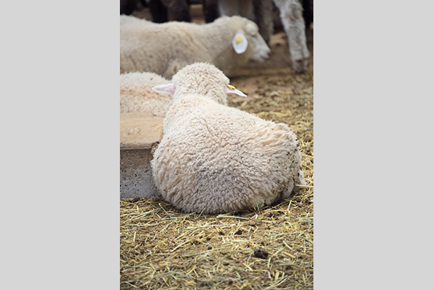 生まれて数ヶ月の子ヒツジを撮影したものです。飼育小屋で寝ている姿を後ろから撮影し、子ヒツジのコロコロとした丸い後ろ姿とやわらかそうな毛並みを強調しました。